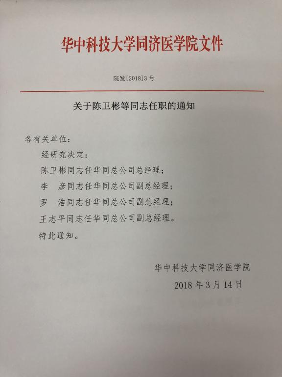 院发[2018]3号 关于陈卫彬等同志任职的通知